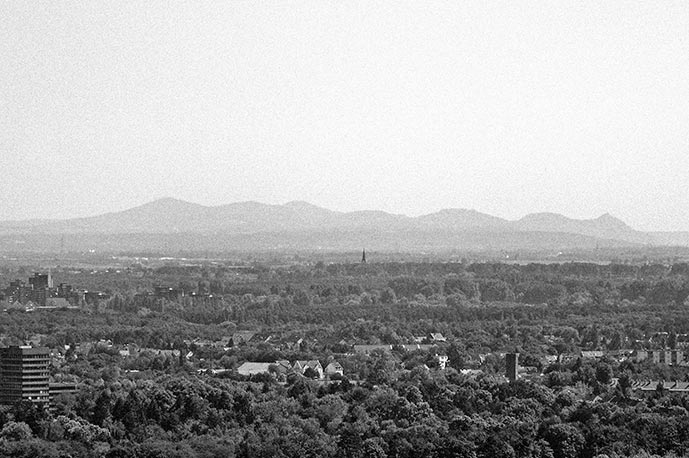 Mystical place in the south of Bonn, where Siegfried killed the dragon in the legend of the Nibelungen, seen from Bergisch Gladbach.